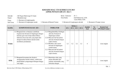 Download bank soal kelas 2 tema 4 . Dapatkan contoh kisi kisi penulisan soal ujian tengah sem. Sebuah ruangan terdiri atas 4 lampu terdiri dari dua lampu . Bank soal kelas 2 tema 3 (klik disini); Contoh kisi kisi uts tematik kelas 1 tema 2 semester 1/ ganjil kurikulum 2013.